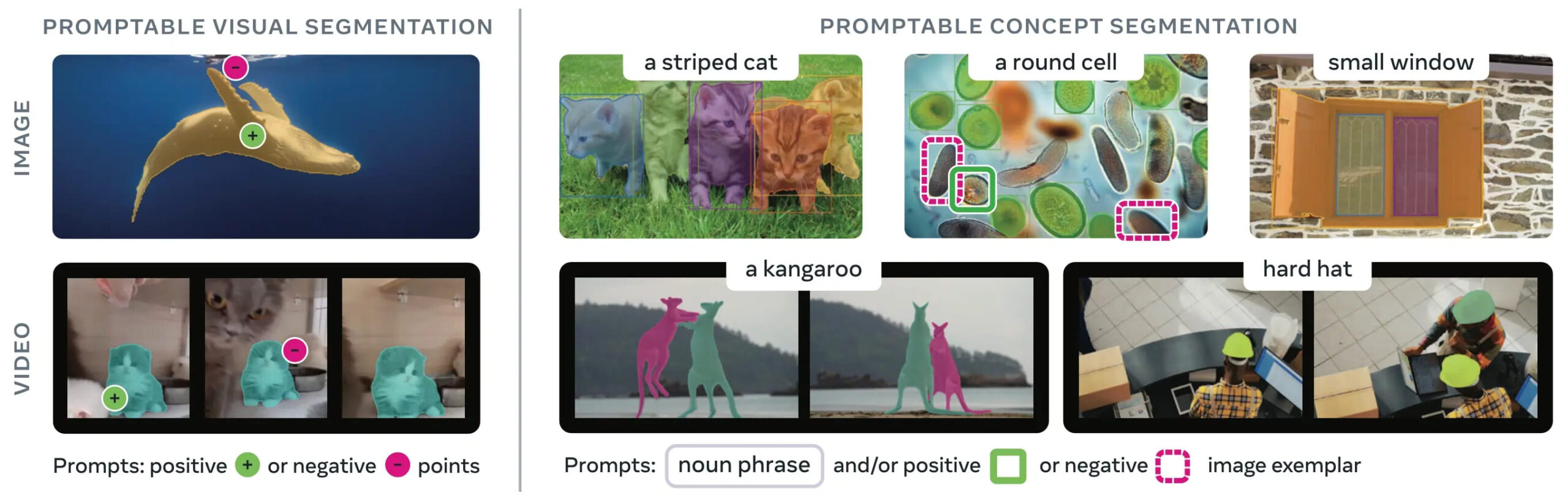 - SAM 2: Adds video support and real-time object tracking